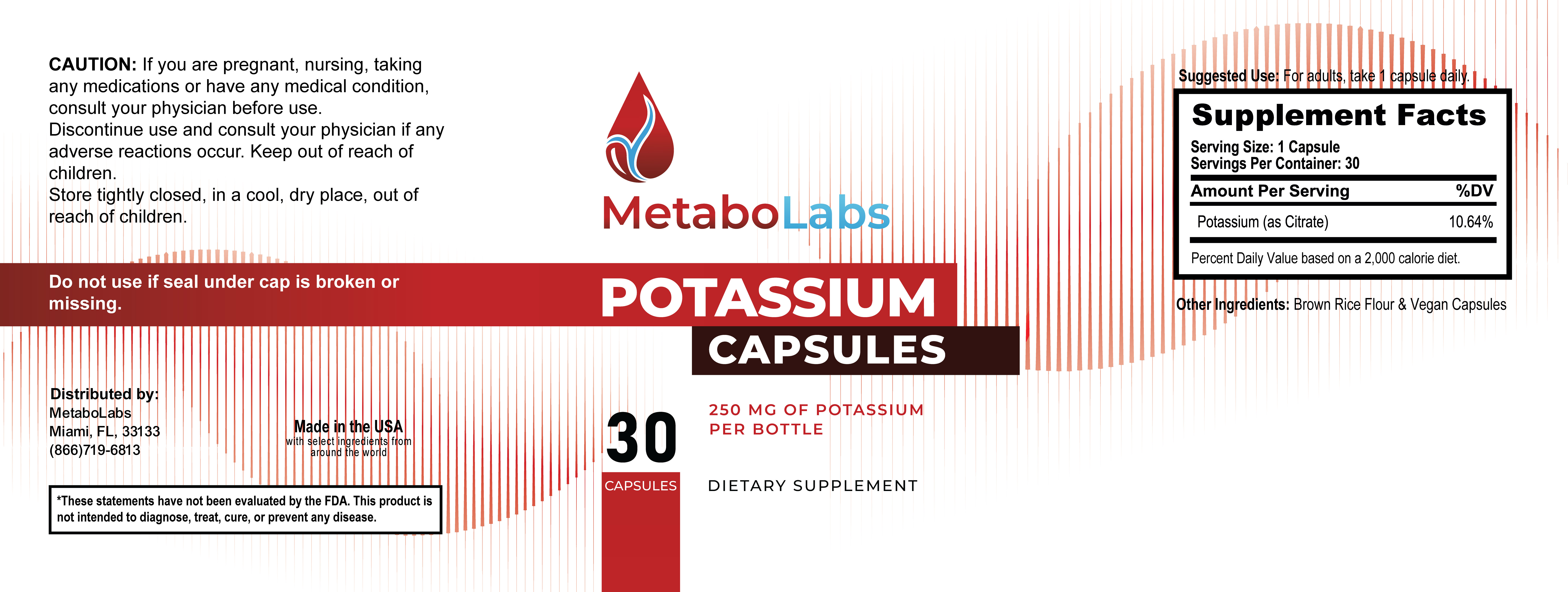 Potassium Capsules 30 Count provide 250 mg of potassium per capsule in a convenient dietary supplement. Potassium is an essential mineral that helps support hydration, muscle function, and overall balance. These capsules are designed to complement a healthy lifestyle, including proper nutrition and regular activity.